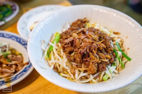 麵裡還加了些青菜、豆芽菜和油蔥肉燥,完全看不到麵條。