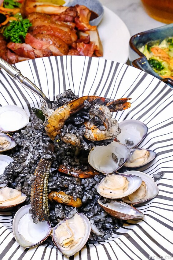 燉飯的醬汁收得比較乾,是霸子我喜歡的類型,同樣帶有些許米芯口感,墨魚醬汁結合奶油白醬所以看得出來沒有那麼黑,而且吃得出奶香氣味。