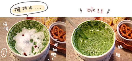 上面的臉蛋圖案真的很可愛,因為想拍他…不太敢喝抹茶的我還是點下去!