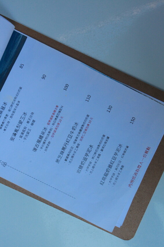 菜單種類很多可供選擇,菜單提供冰品類、茶飲類、咖啡類、甜湯類及甜點類等,整體餐點定價策略是很親民。