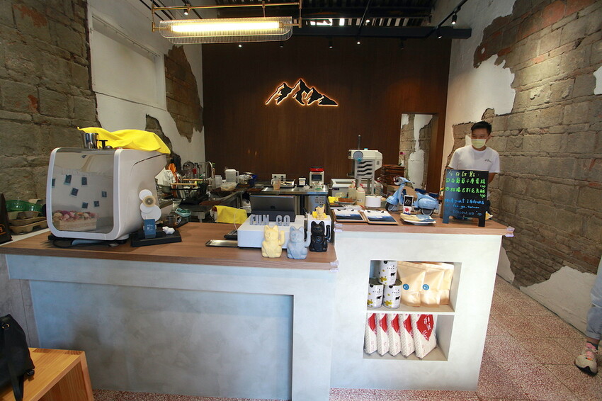 這櫃台以水泥來製作有點日式氣息,後面牆面掛著很美觀Logo設計。