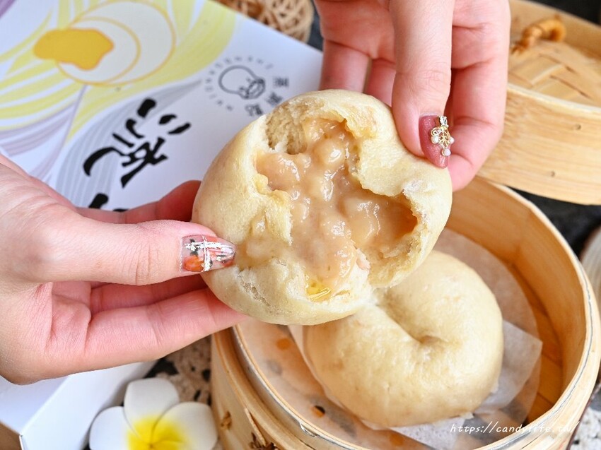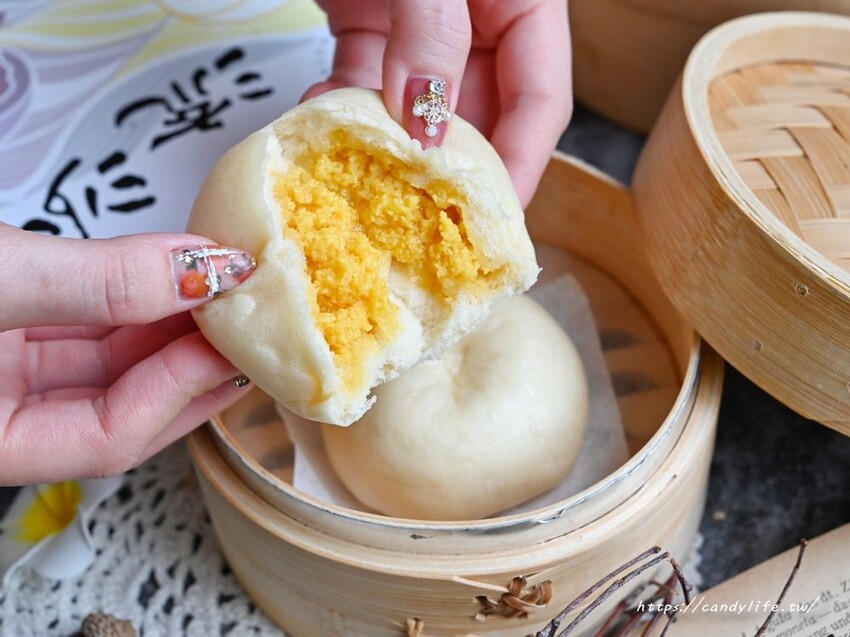 外皮一樣採用自製老麵,口感超Q彈,內餡使用新鮮鹹蛋黃與奶水,是說蒸擀點的流沙包內餡不是爆漿的模樣,而是有點想奶酥的感覺,奶香濃厚,吃起來不會很甜膩,整顆吃完也不會讓人覺得膩口