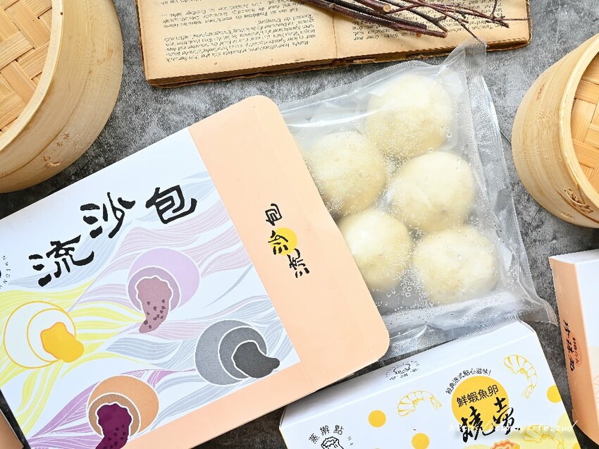 蒸擀點的流沙包目前共有三種口味,分別是黃金流沙包、黑金芝麻流沙包及椰香奶芋流沙包,一盒都是8顆入,一樣不用退冰,直接進大同電鍋中,倒入一杯水,等待10分鐘就可以享用囉