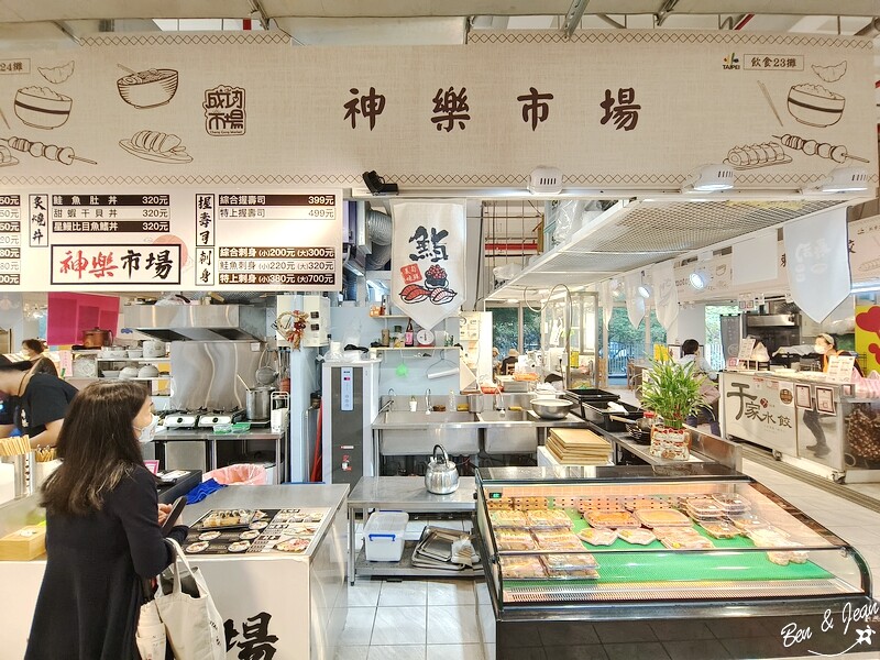 座位散落在不同的區域,神樂市場日料店剛好就在電梯出口