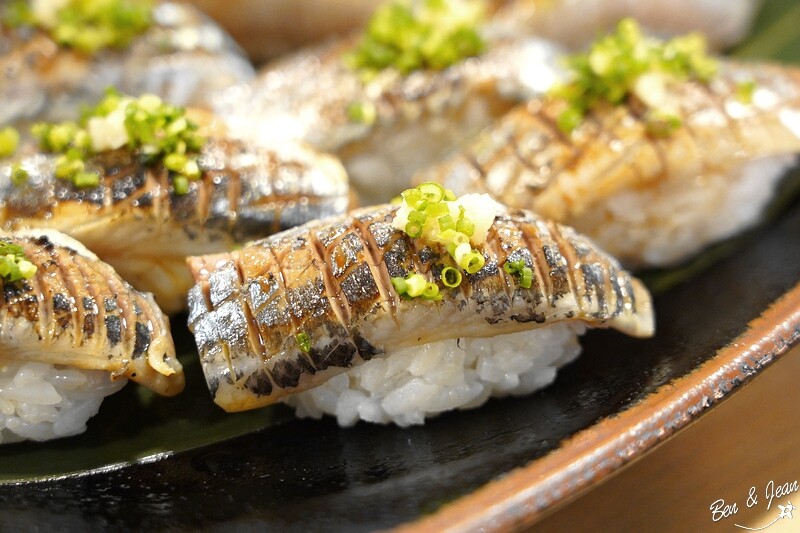 上面加上青蔥及薑泥的點綴,魚皮本身金燦燦的光芒,整體大小適中,醋飯與魚肉搭配適宜,一口一個,入口感覺醋飯在口中快要化開了,手藝不在話下,太滿足了
