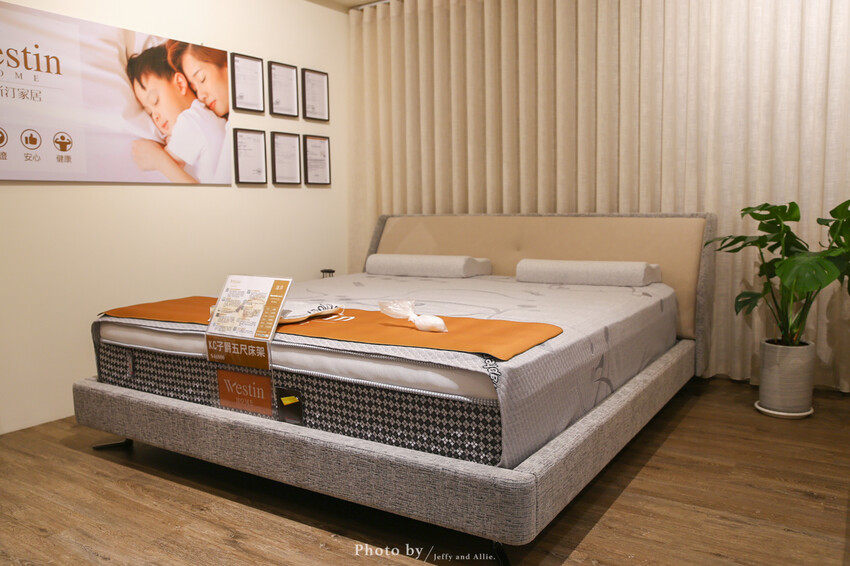 來到三樓的重頭戲,威斯汀的床墊真的讓人眼睛一亮啊!說到挑選床墊,真的是一大學問,太軟、太硬、太熱、太涼都會睡不好,每個人喜歡的軟硬度也不盡相同,因此購買床墊,坐坐看肯定是不夠的,一定要現場試躺才行呀!