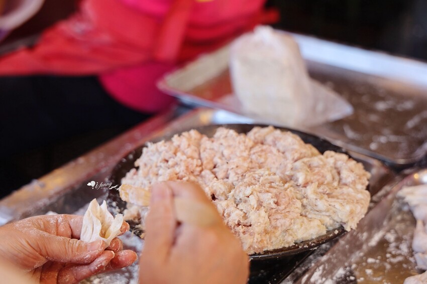 老曹餛飩目前已由第二代接手,除了有了新的商標,更不惜成本地改用豬界的勞斯萊斯-做內餡,現場工作人員雙手幾乎沒有停過地包著一顆顆的餛飩。