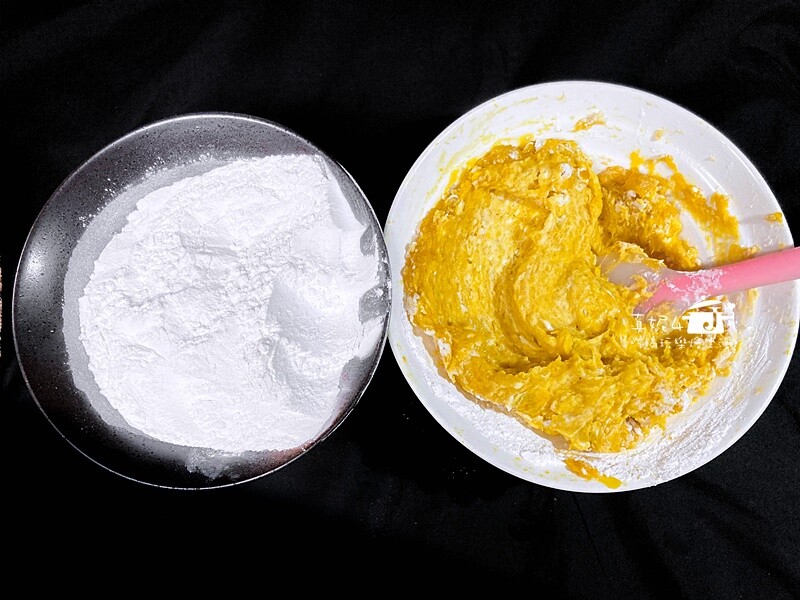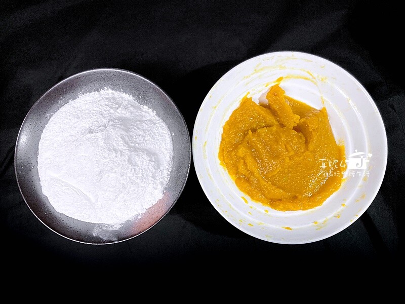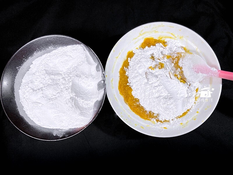 糯米粉要分次加進南瓜泥裡去拌合,不能一口氣把粉倒入