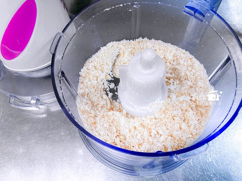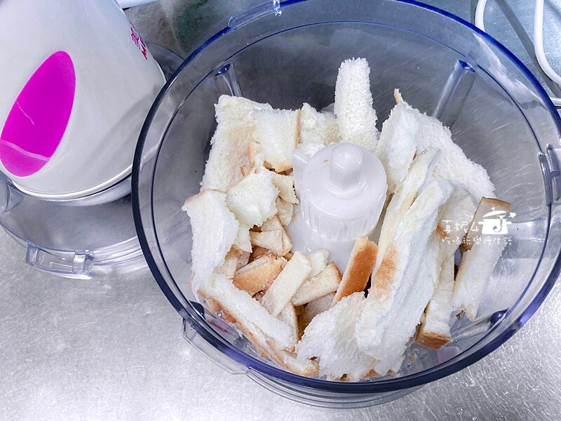 2.家裡沒有預備的麵包粉,我改用吃剩的土司拿調理機打到細碎
