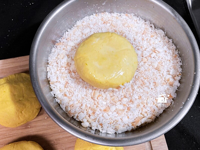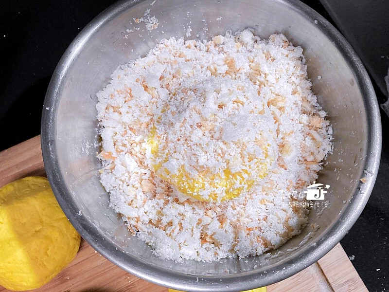 南瓜450g,細砂糖35g,糯米粉300g,麵包粉200g
