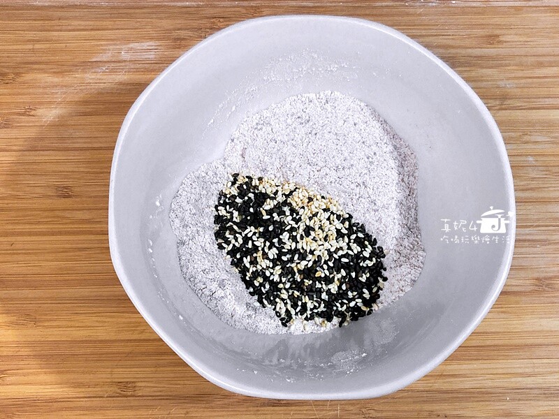紅糖40g,細砂糖40g,中筋麵粉30g,黑/白芝麻15g