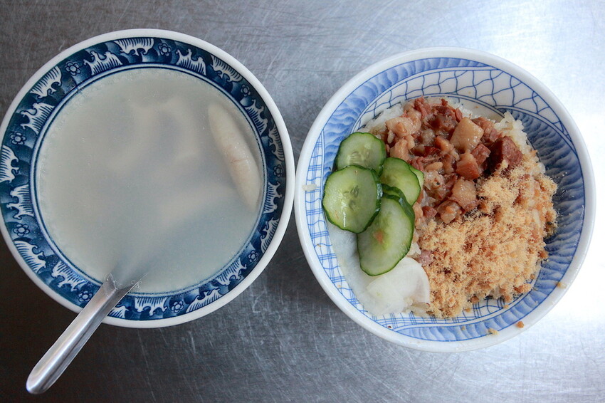 這米糕有放入醃漬小黃瓜與白蘿蔔來解膩,鋪上魚鬆跟滷花生再淋上肉燥。