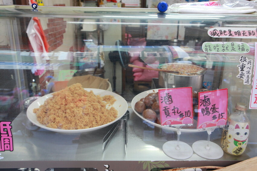 餐點種類很少除米糕與四神湯,還有滷貢丸10元與滷鴨蛋15元。