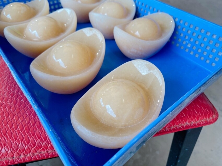 原來磨好的石頭還要進行專業拋光,玉石才會變得晶亮吶~