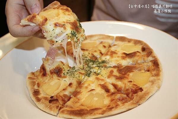 忍不住也拿起一片烤得熱呼呼的夏威夷薄皮披薩,口感酥脆的餅皮搭配微酸甜的鳳梨和超香的火腿片和洋蔥,真的是太.......美味了!