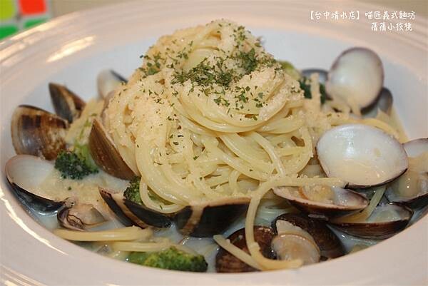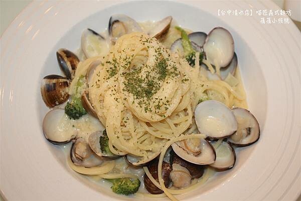聞起來有濃濃奶香味的白醬蛤蜊義大利麵,是艾琳每到義式餐廳必點的餐點之一,義大利麵的周圍擺了滿滿的新鮮蛤蜊,上頭則是灑滿了鹹香可口的起司粉,光是看起來就很美味!