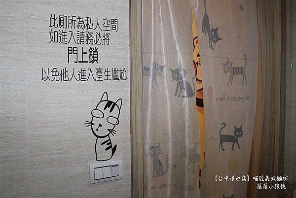 不只門口有著大大的萌貓圖案,走進廁所,艾琳發現雖然是離峰的下午時段,不過,廁所內依舊保持著令人舒服的乾淨無異味,牆上、布幔上...仔細找,這些可愛又帶點調皮調性的貓咪,正躲在某個角落,等待有緣人發現它!