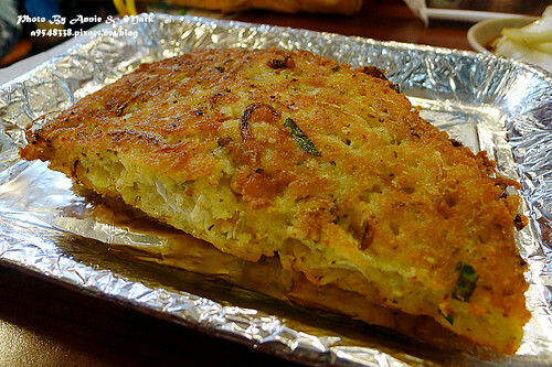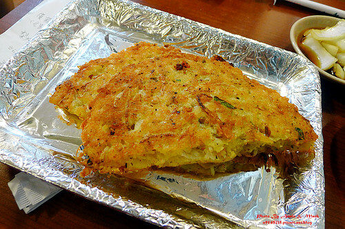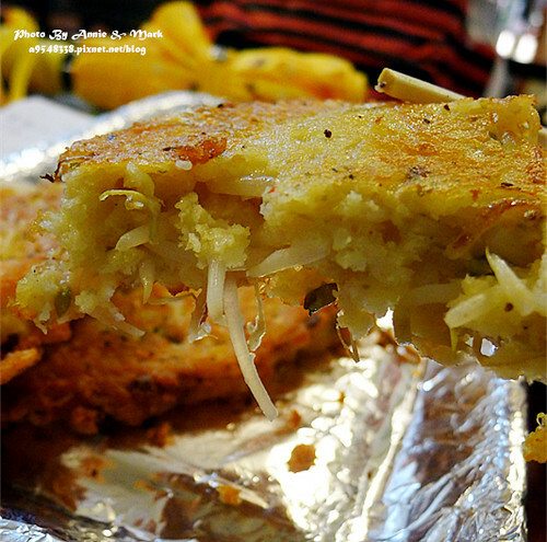 表面炸得很酥,口感有點像是偏硬的馬鈴薯煎餅,