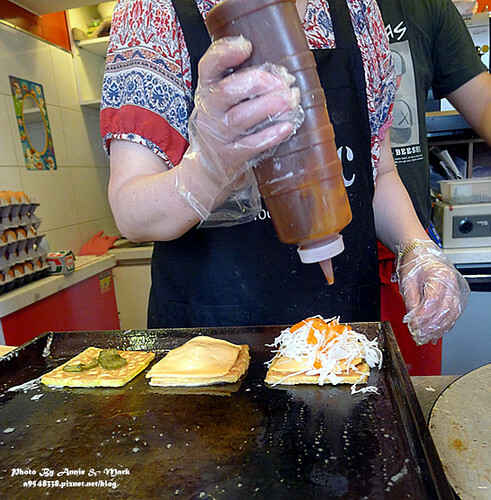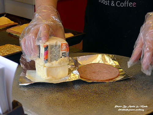 接著是三明治的製作方式,阿珠媽都會帶著手套,感覺蠻乾淨衛生的!