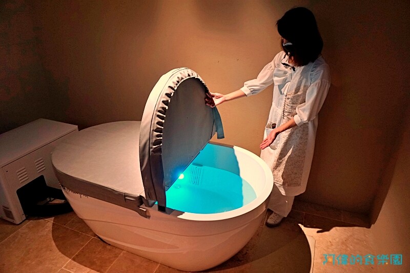 很像一顆蛋造型的科技冰浴,裡面是鎂鹽水。