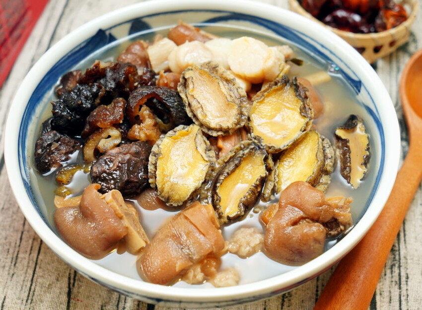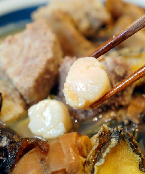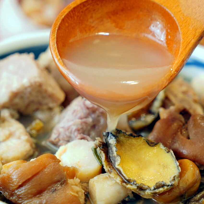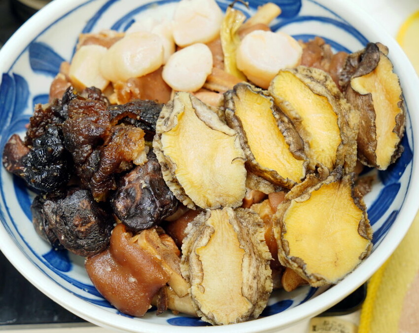 ▼鮑魚軟Q鮮美、干貝柔嫩鮮香、豬腳肥嫩香Q、排骨酥酥嫩又帶點蒜香,每種食材都好好吃~