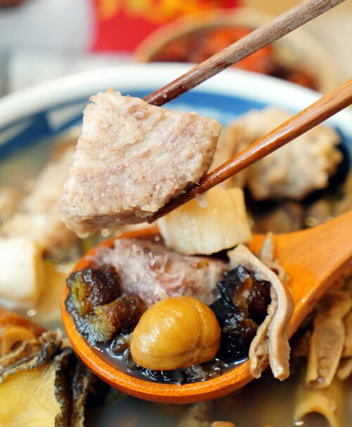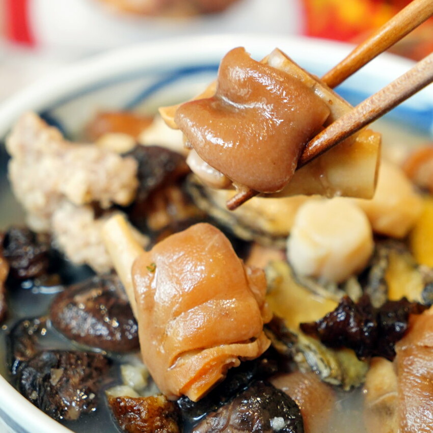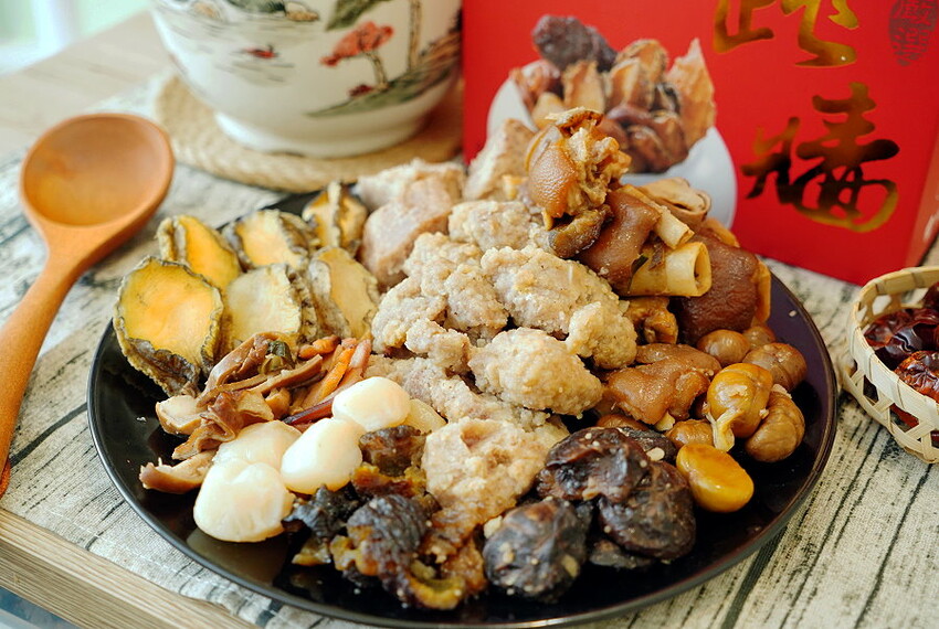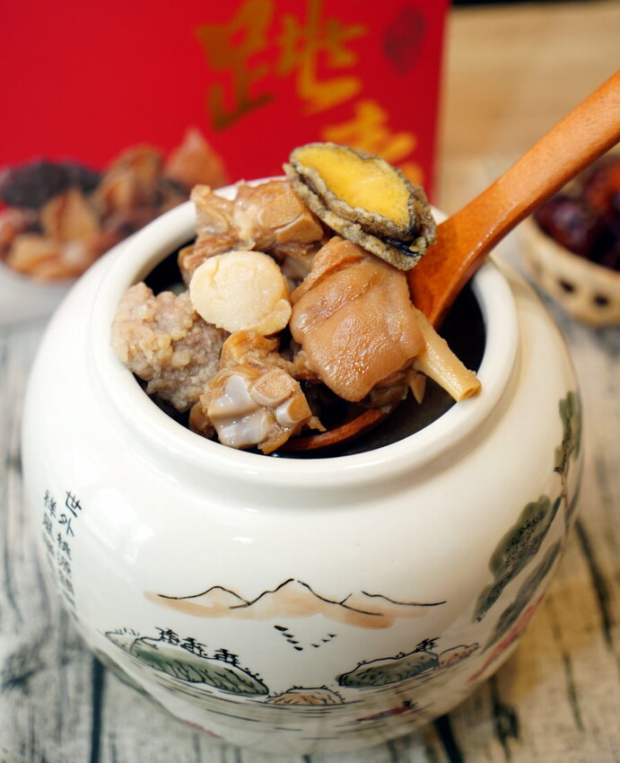 ▼佛跳牆的配料可說是應有盡有,還多了鮑魚、干貝、黑玉參等高級食材,過年就是要吃好吃滿,尤其拿出來宴客也很有面子!