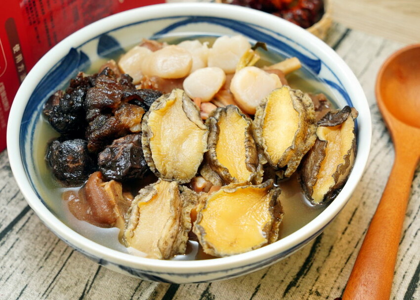 極品干貝、高檔黑玉參、上等鮑魚
