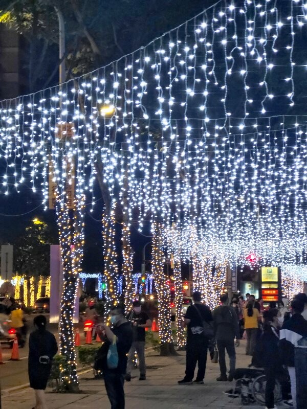 ▼通往板橋遠百的夢幻光廊也是相當好拍,每一段都有不同的顏色,加上雪白妝點整個很夢幻啊!