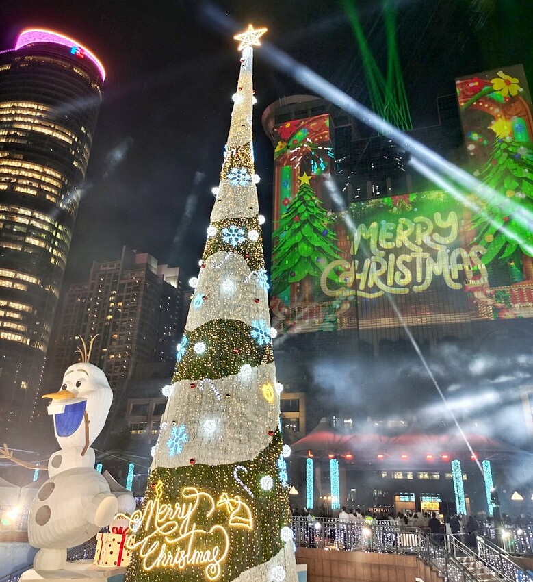▼今年的市民廣場化身為雪白之城,可愛的雪寶就圍繞在聖誕樹主燈旁,主燈秀每半小時一次,大家可以抓一下時間,再來好好拍個過癮!