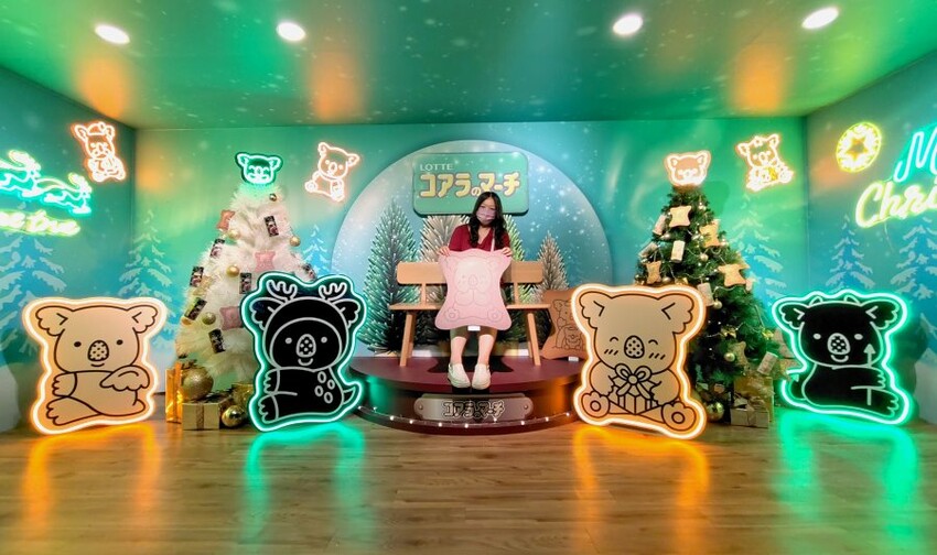 ▼這裡最吸引我們的就是樂天小熊餅乾的造景,還有招牌的樂天小熊在這裡陪伴大家~