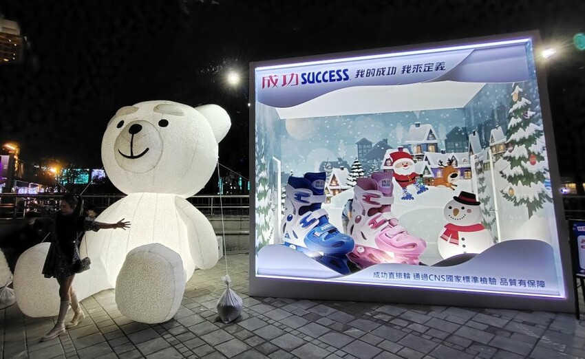 ▼另外一隻小熊旁則是由成功直排輪設置的藝術裝置,大家還可以進到裡頭去合照,很像立體版相框啊!