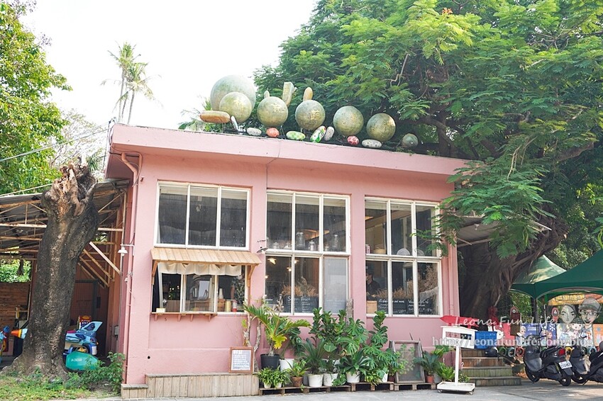 可以注意到屋頂上看起來很像西瓜的圓石,