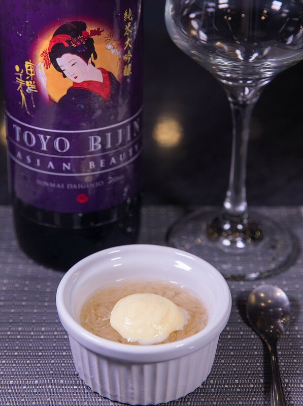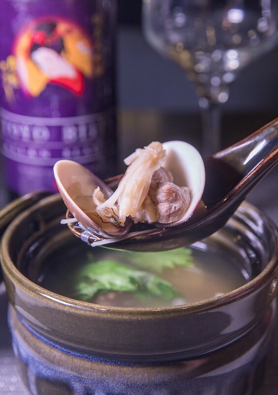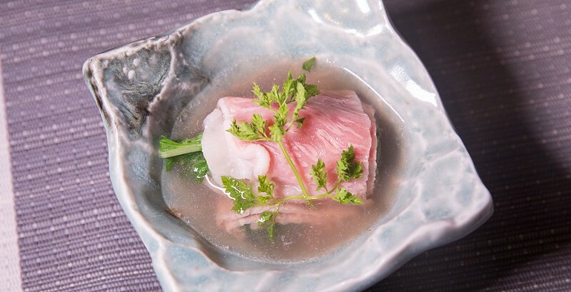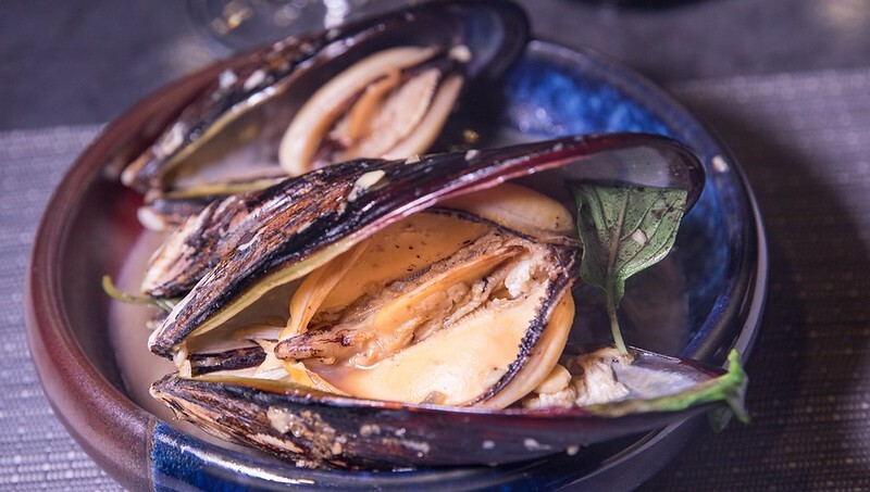奶蒜香馬祖淡菜(奶油、蒜末、高湯、淡菜、羅勒),這幾年馬祖淡菜在台灣的餐飲界大放異彩,西餐、中餐、日餐、 台菜都有它的身影,以個人吃過無數次的味覺經驗,半點不輸高端的歐洲淡菜,個頭大又鮮又甜又多汁。師傅巧妙運用奶油、蒜末、高湯等日式調味法,再融合羅勒的元素,帶出馬祖淡菜更多鮮甜的滋與味,就連底下的湯都很好喝,即便有一點點略鹹。