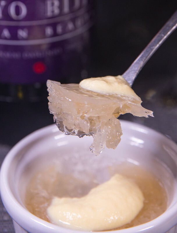 最後的柚子凍(配卡士達醬)我也很愛,微冰涼的口感像是化掉水洋羹的口感,又有一點像咱們菜燕的微脆口,滿滿的柚子甜酸,甚至後端的微苦澀和卡士達醬真是好搭。