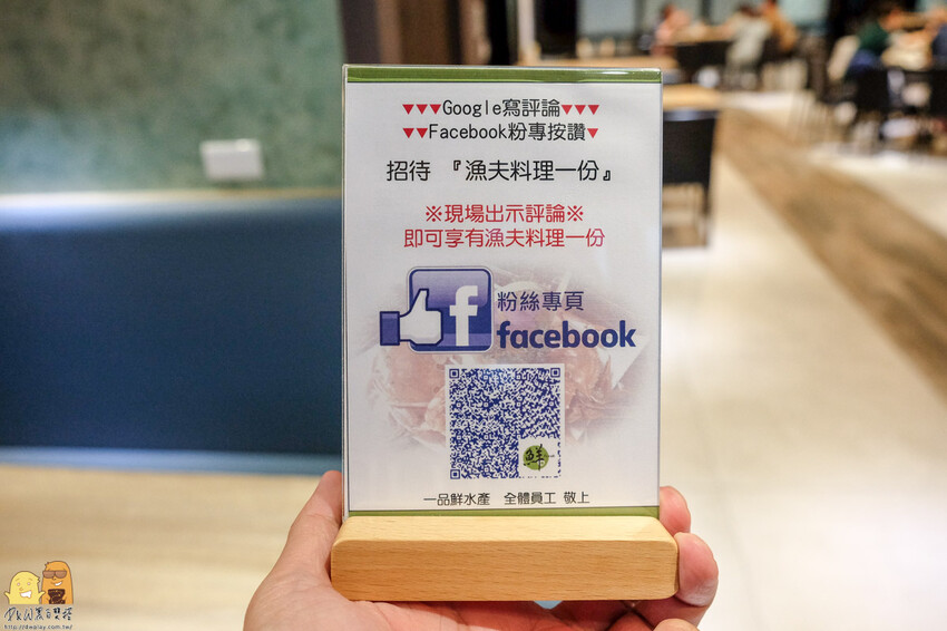 因為重新開幕,只要來店在GOOGLE評論跟FB粉專按讚,就能招待漁夫料理一份