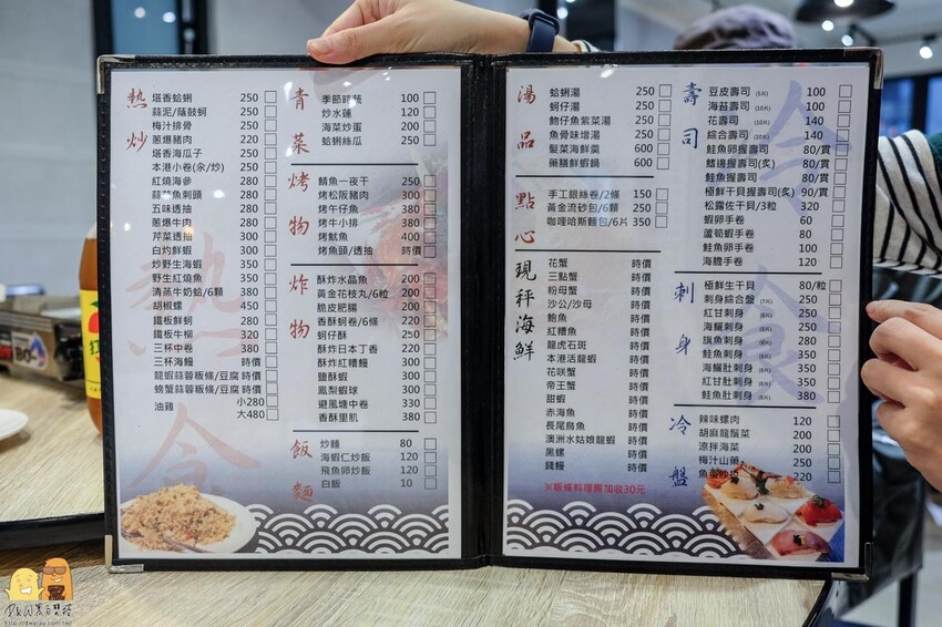 除了現秤海鮮是時價外,其他餐點的價格都一目了然的呈現在菜單上