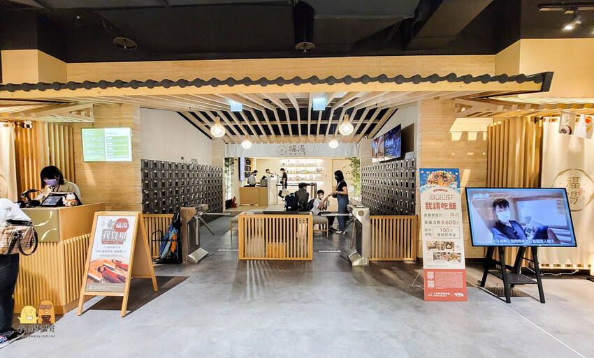 福湯岩盤浴就在新竹大魯閣湳雅廣場的地下一樓,搭手扶梯下去就會看到超多日式的造景