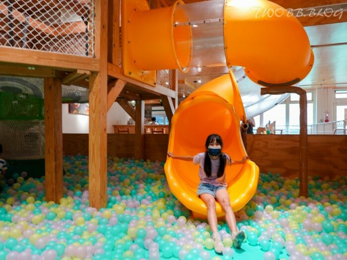 我們一周前就先訂位,原以為年紀較大的妮姊可能對於親子餐廳不感興趣,沒想到進入看到遊具還是淪陷了,馬上往球池溜滑梯衝去。興奮的還有其他孩子,大門開啟的瞬間眼睛都亮起來了。
