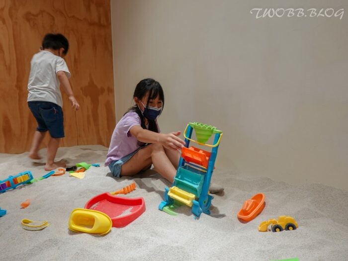 這裡的沙坑使用的是相當細緻的白砂,而且維持得很乾淨,加上足夠多的玩沙工具,小朋友也很喜歡在這邊享受玩沙樂趣。