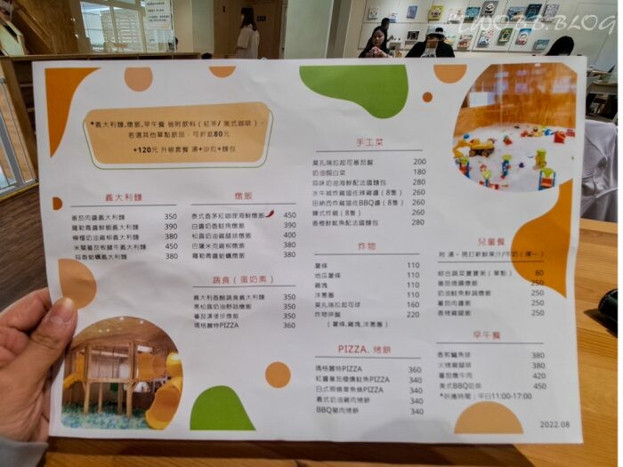 共好親子餐廳的菜色豐富,輕食、義大利麵、燉飯炸物及寶寶粥應有盡有,凡點義大利麵、燉飯、早午餐皆附基本飲料(紅茶/美式咖啡),也可折抵80元選購其他單點飲品。