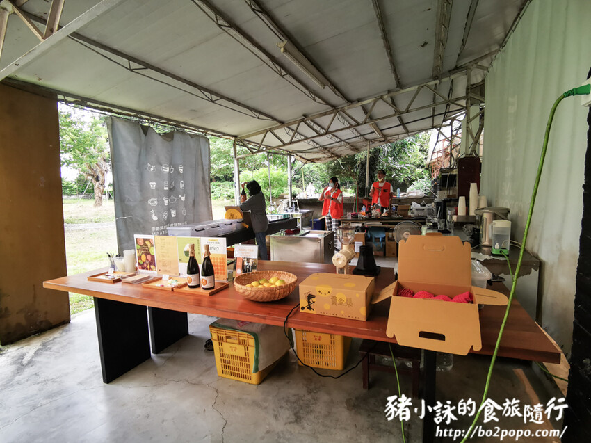 一旁的小攤位,販賣品項有咖啡、飲品、鬆餅、米漢堡,還有一些像是黃金果等地農特產品。