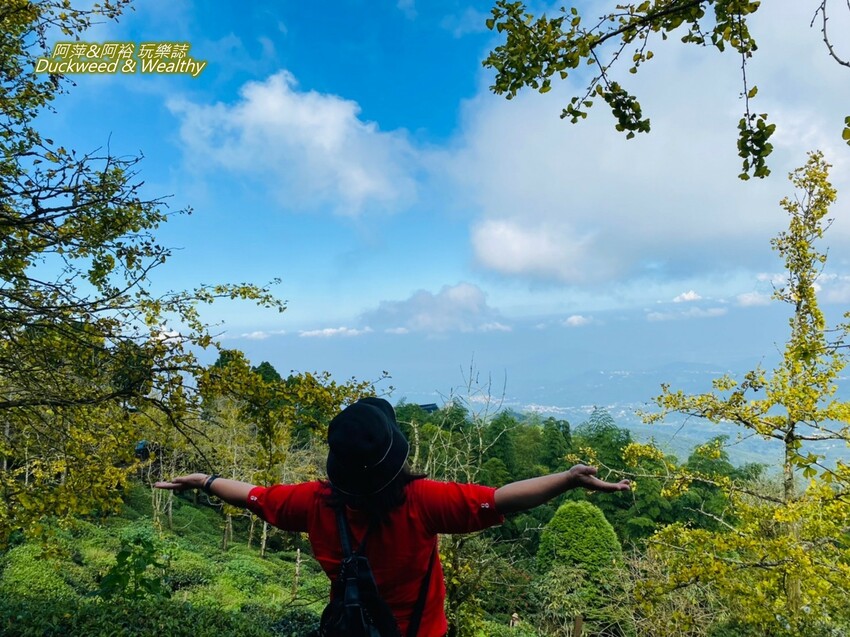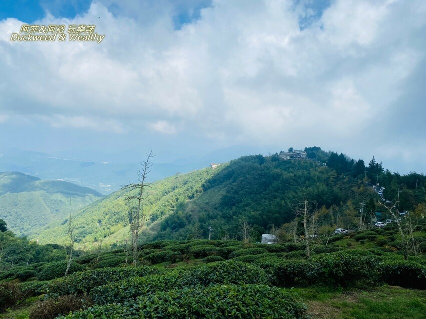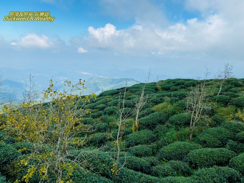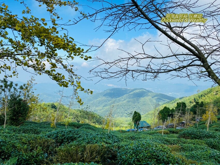 「大崙山觀景台」青翠的茶園風景與遠方山巒,一望無際的美麗景色,