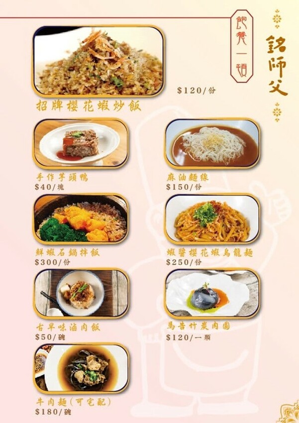銘師父餐廰是花蓮吉安知名老字號,其名稱來自第一代創業的莊忠銘師傅,目前則是由第二代的莊育賢師傅主導經營。開業超過30年來,除了不斷追求創新,店內95%食材都是花蓮在地最新鮮的農特產。每一口都是家鄉味的銘師父