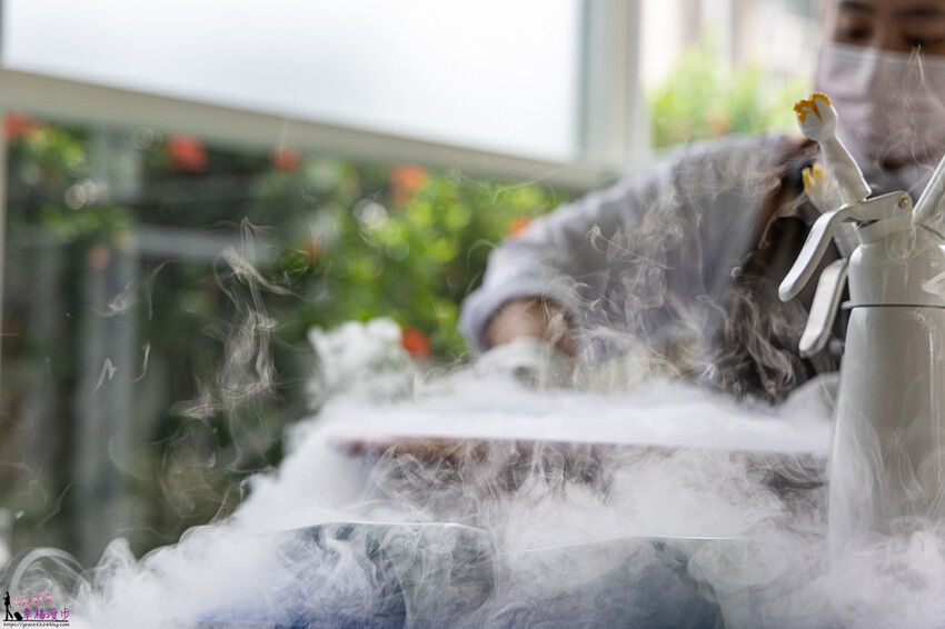 整個煙霧環繞、仙氣爆棚,這甜點真的是很浮誇啊!