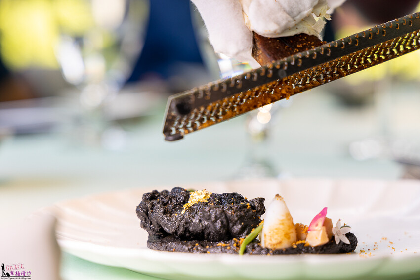胭脂蝦又是一道令人讚嘆的美食,最上方有著梅酒泡泡,若隱若現的料理增添點神秘感。