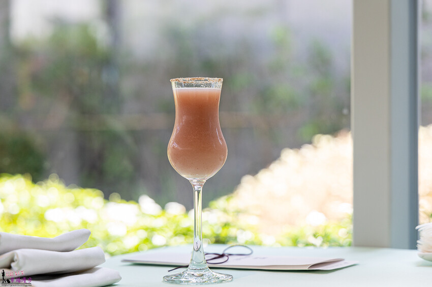 第二杯的飲品粉紅蘇維翁,適用台灣特有的紅心芭樂、水梨、百香果、檸檬和青蘋果一起去調配的,口味上有點類似Sauvignon Blanc,很適合搭配生蠔和胭脂蝦。