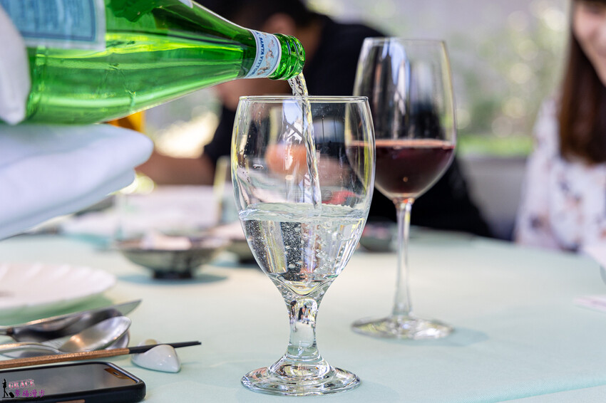 我們點了一套無酒精的飲品價格是780元,由左至右分別是Ca Cava、粉紅蘇維翁和左岸,因為要拍照我請店家三杯一起上,平常的話是跟著菜的順序一起上喔!