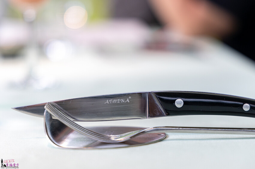 餐具換上主菜要用的刀具,這隻牛排刀看起來質感很好耶!