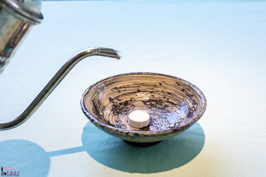 用餐前服務餐會先準備好濕紙巾,會將壓縮好的紙巾放在小缽盤中,再淋上水加濕使用。