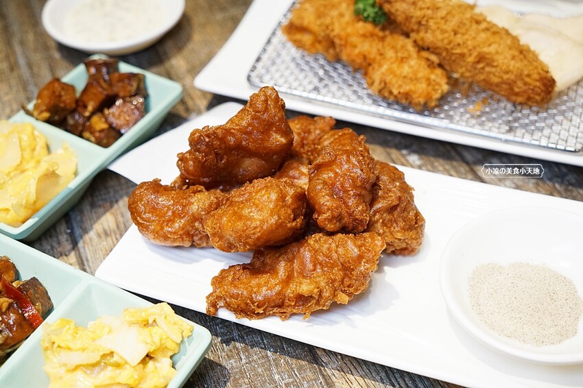日式炸雞塊,噴香的炸雞塊個頭不算小,而且剛炸好那一上桌的香氣特誘人。建議可先單吃享受外酥肉嫩鮮甜味,亦可沾上胡椒再吃都很對味喔!